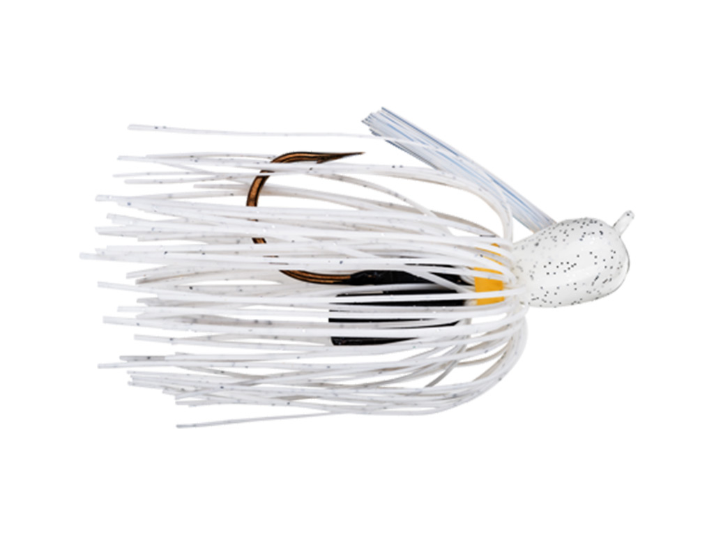 The Pro-Model Jig has a unique head and rattle design. Both enhance performance in heavy cover. The wide rattle has one big open chamber that enables the rattle to work even when the jig moves to the side. It is positioned to the front of the hook shank, higher off of it and has a barb, all of which make it easier to rig and to hold onto soft plastic and ElaZtech™ soft bait trailers. A larger, more premium Mustad® Ultra Point Hook is used. Premium camo-flash skirts enhance the colors. The Pro-Model® Jig is truly a top-of-the line jig.