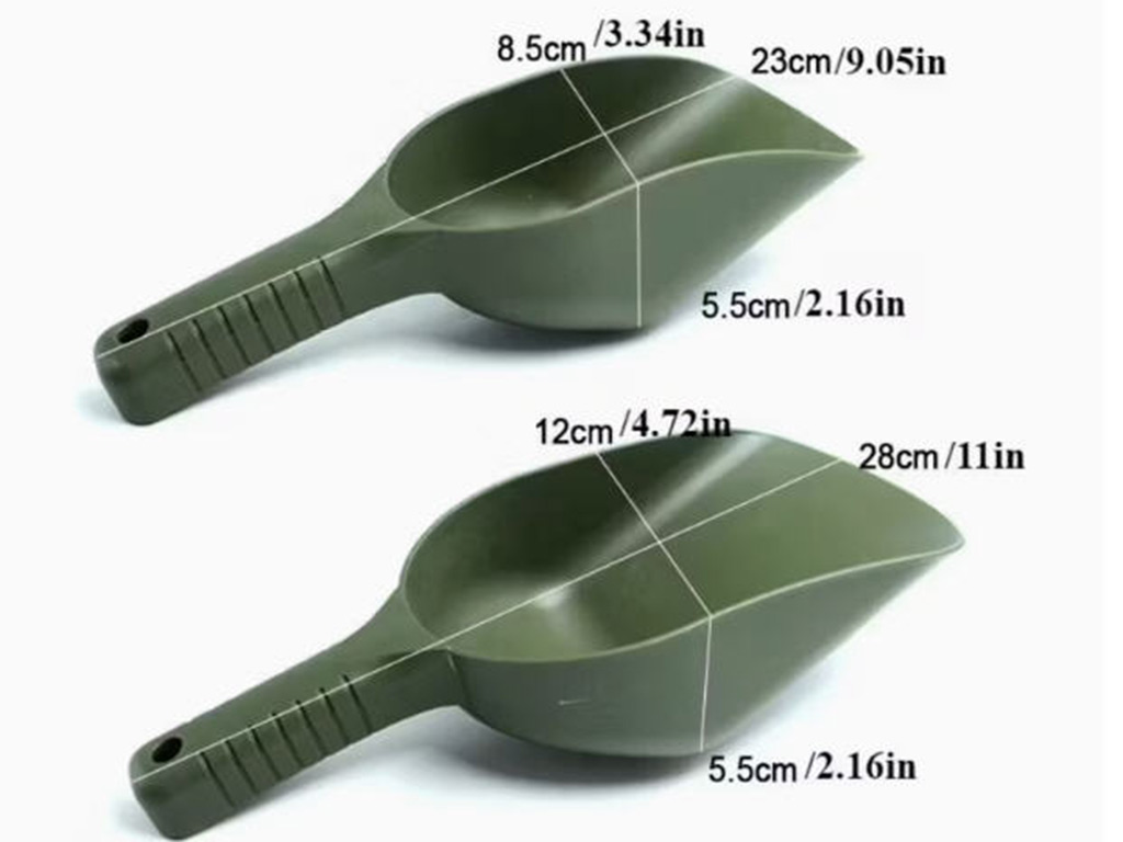 2pcs High-Index Plastic Fishing Spoons, Multipurpose Baiting Scoop for Carp Fishing, Portable Handy Food Shovel, Green, with Bait Throwing and Tackle Organization