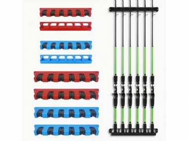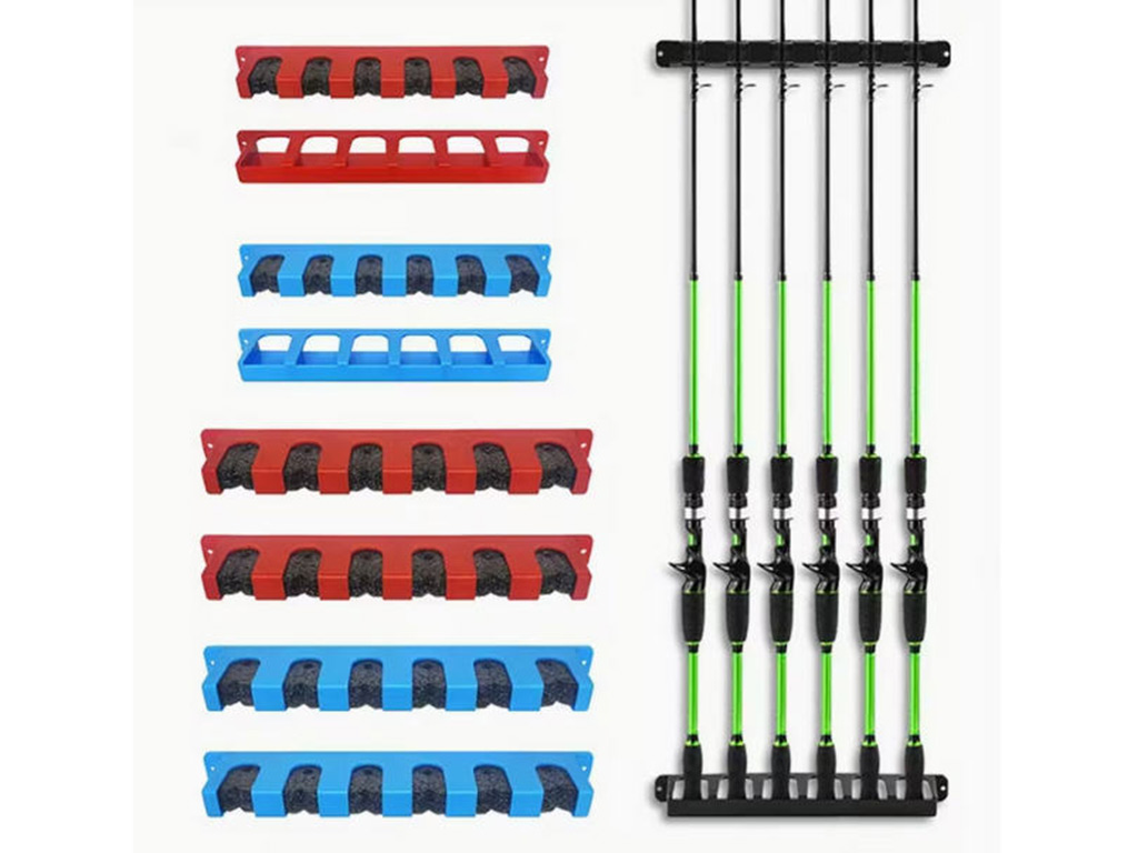 1 Set Modular Fishing Rod Holders, 6-Rod Rack Vertical Pole Holder Wall Mount, ABS Material, Mixed Color, Recessed Shelf, Fixed Frame