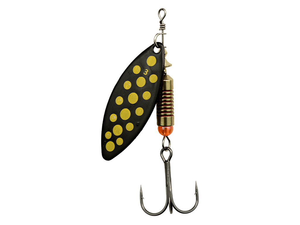 When chasing a variety of predators from bass and tigerfish to big bream our Tamer Spinners are a tackle box essential. Each spinner features a willow leaf blade that starts spinning the moment it hits the water and maintains action at a range of retrieve speeds. Fitted with super-sharp BKK trebles and upgraded components, they’re available in sizes #2 through #4 and four striking colour patterns: Black Blade with Orange Dots, Black Blade with Yellow Dots, Copper, and Fire Tiger.