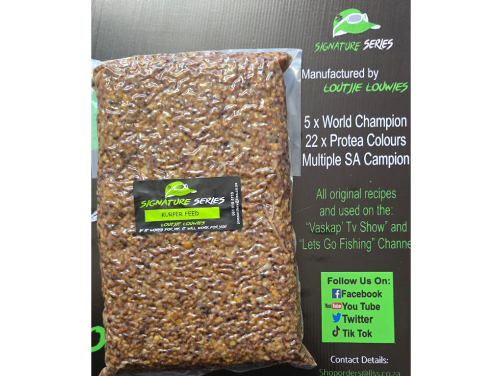 Our NEW Kurperfeed is available to all shops from today . Whole Sorgum treated with lots of love and vacuum packed . Mix it with some Signature Series mieliebom....with a bit of Maroek or both at the same time . When they locate this feed they dont move on they stay and chow .