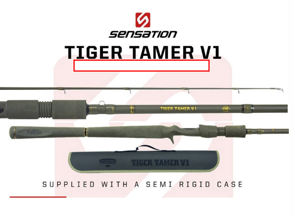 SENSATION TIGER TAMER V1 (CASTING). When chasing hard-fighting Tigerfish in the current or the reaches of dams across the continent the new spinning and casting Sensation Tiger Tamer V1 are the rods for the job. Completely redesigned from the ground up it is built around a lightweight, extra heavy powered blank made from a blend of 24- and 30-Ton carbon to deliver fish-pulling power while keeping them pinned on single and treble hooked baits.